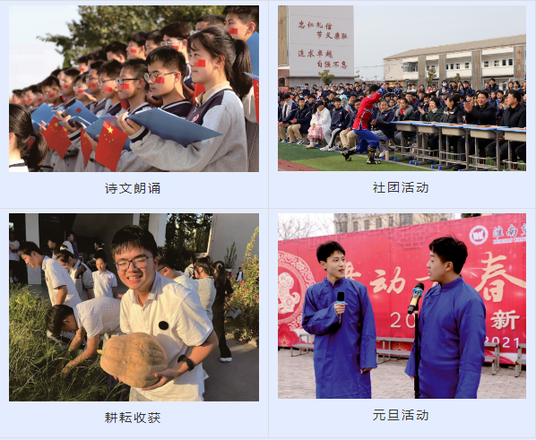 學校十分重視班級和校園文化建設,充分發(fā)揮環(huán)境育人的作用。優(yōu)美的校園環(huán)境、高雅的校園文化,和諧的師生關系,給人以奮進向上的力量。學校通過宣傳欄、電子顯示屏、班級文化墻等,創(chuàng)設了一個時時受教育、處處受感染的德育環(huán)境,潛移默化影響學生的行為,陶冶情操,健全人格。